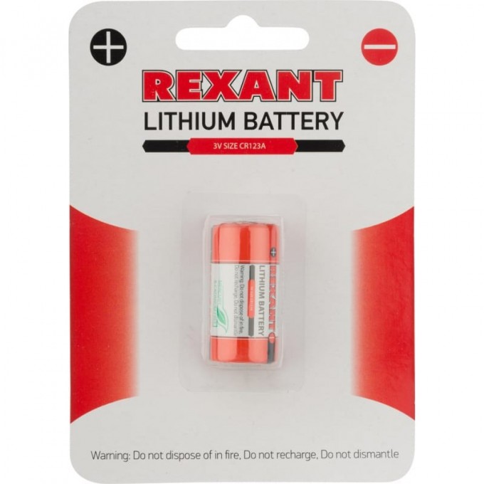 Батарейка REXANT CR123 предназначена для использования в фотоаппаратах, электронике, системах безопасности (сигнализациях).