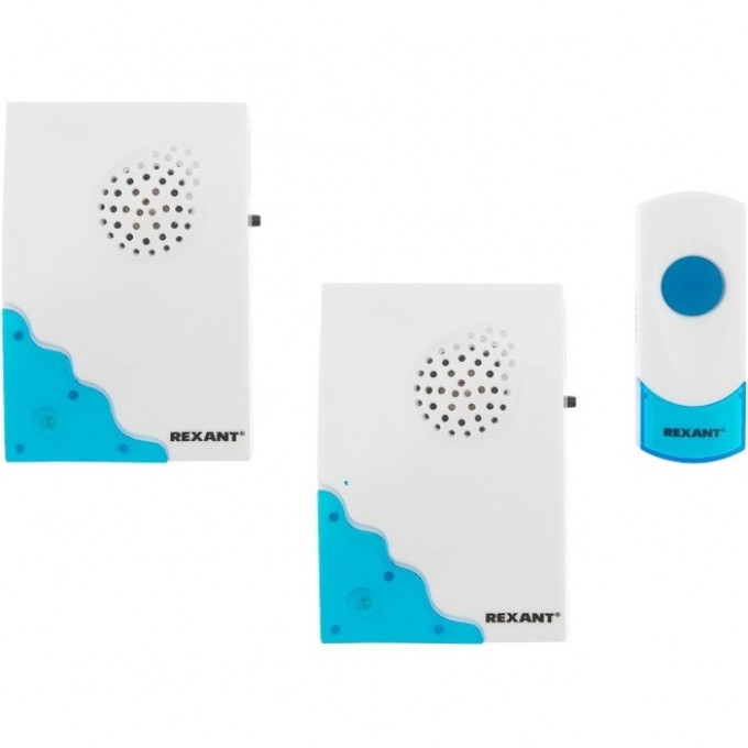 Беспроводной дверной звонок REXANT RX-5 с двумя вызывными панелями 32 мелодии 100 м кнопка IP44 (белый/синий) 73-0050
