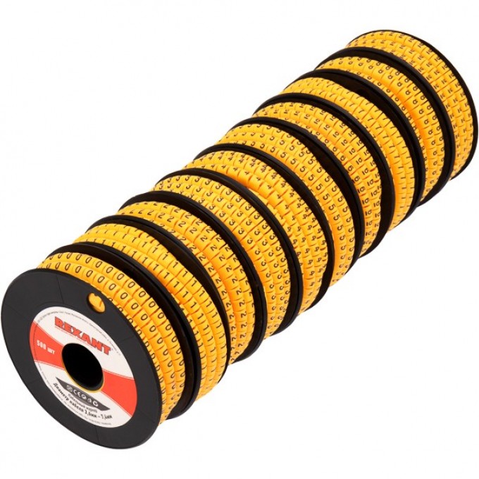 Маркер кабельный 0-9, комплект 10 роликов (от 3.6 до 7.4 мм) REXANT предназначен для маркировки проводов и кабеля в распределительных щитах. Изготавливается из эластичного и негорючего поливинилхлорида, с отверстием для проводника.