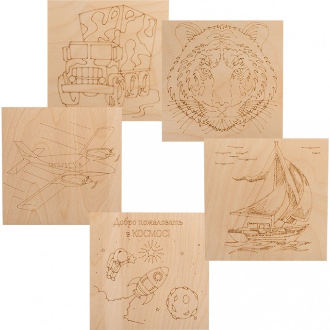 1. 5 досок для выжигания («Тигр», «Самолет», «Машина», «Корабль парусник», «Космос»)