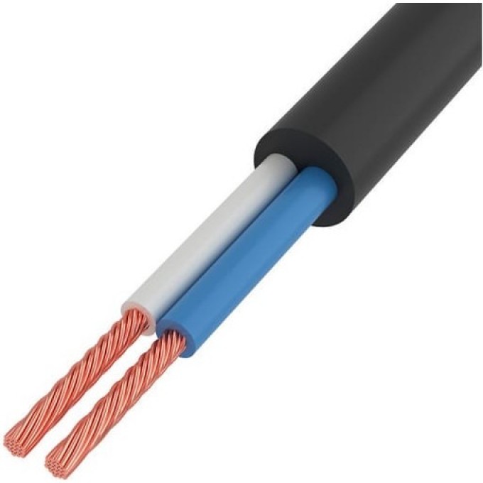 Оболочка кабеля ПВС — ПВХ пластикат, наложена с заполнением промежутков между жилами, придавая проводам круглую форму.
