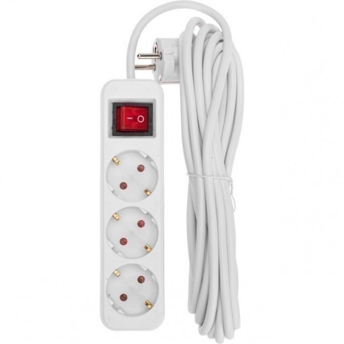 Удлинитель REXANT STANDARD 3 гнезда, 5м, 3х1,0мм², с/з, с выключателем, белый 13-4014
