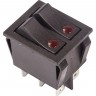 Выключатель клавишный REXANT 250V 15А (6с) ON-OFF черный с подсветкой двойной (RWB-512, SC-797) 36-2430