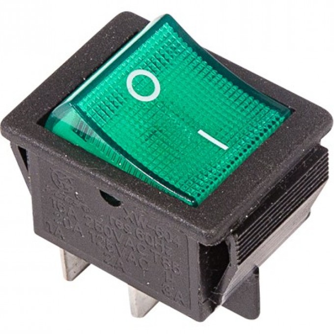 Выключатель клавишный 250В 16А (4с) ON-OFF зел. с подсветкой (RWB-502 SC-767 IRS-201-1)