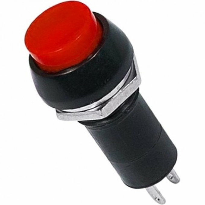 Выключатель-кнопка  250V 1А (2с) (OFF)-ON  Б/Фикс (на размыкание)  красная предназначена для коммутации электрических цепей переменного тока напряжением до 250В, путем включения-выключения питающего провода. Кнопки применяются в качестве комплектующих изделий различного электрооборудования (в аудио системах, блоках питания, электроустановках на различных производствах, автомобилях, и многих других местах). Разнообразные цветовые варианты исполнения позволяют эффективно комплектовать  панели управления. Изделие состоит из двух основных частей - лицевой части (головки) и контактной, и имеет пружинный возвратный механизм. Монтаж осуществляется без применения винтов на плоских панелях толщиной от 0.5мм до 3мм, с помощью гайки. Подключение контактов осуществляется с помощью пайки.